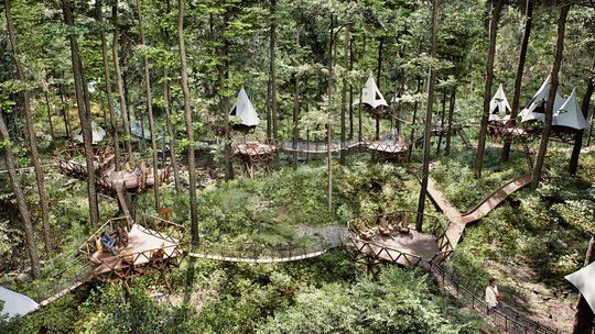 Treewalkers takes O2’s proven expertise and scales it into eco-hospitality. By deploying modular camps through developer partnerships, Treewalkers creates recurring revenue from nightly bookings, unit sales, and licensing of our patented Tetratruss system.